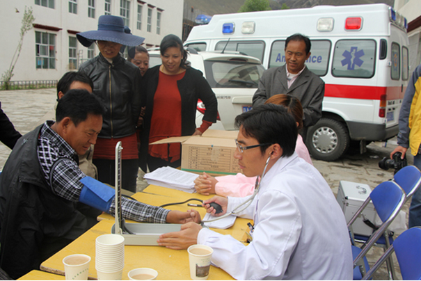 對于過為尼木縣鄉(xiāng)村小學老師們的體檢,董發(fā)善醫(yī)生說:“大部分老師都患有血管神經(jīng)性頭疼和不同程度的胃病和膽囊疾病。這是由于在鄉(xiāng)村學校中,老師們工作繁忙,經(jīng)常忘記吃飯或者到了吃飯的時候就湊合吃幾片風干肉,喝幾杯酥油茶。這是造成鄉(xiāng)村老師腸胃和膽囊疾病的原因。此外,由于老師們經(jīng)常站著講課,腰椎疾病的患病率比其他行業(yè)的要高。”在體檢的同時,醫(yī)護人員還向老師們發(fā)放了常見疾病預防知識的宣傳材料。