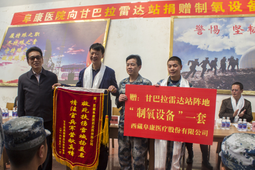 在主席的指示下,王斌董事長組織醫院人員找到給我院供應制氧設備的朱總,請他和我院辦公室主任劉強一起在全國尋找了近一年的時間,終于找到了一款能在海拔5374米的甘巴拉雷達站正常運轉的制氧設備——價值50萬元的CPO93-6變壓吸附空分制氧設備。在5月11日的捐贈儀式舉行之前,該制氧設備已經調試完畢、且最終成功安裝在了甘巴拉雷達站陣地,重新開始為駐守在雷達站的官兵們制氧、供氧!