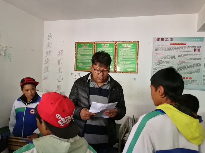 嘎瑪石珍,初二二班班主任,她所在的班級有42名學生,三分之二的學生為住校生,今天有39名學生到校進行體檢篩查。據嘎瑪石珍老師介紹,學校很重視學生的衛生宣傳教育工作,班主任在每周班會上都會檢查學生的手、腳、脖子以及衣服的衛生情況,住校的學生會在老師的監督下每周洗澡、洗衣服,學校政教處、團委也會不定期抽查。但是另一部分走讀生卻不太好監督,雖然經常教育他們,但仍有一部分同學不講衛生,不按時洗澡,體味刺鼻。