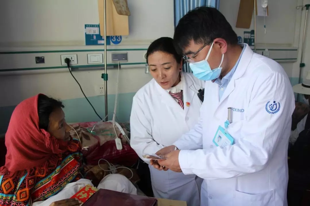 西藏阜康醫院呼吸內科醫生將籌款送到嘎瑪手中