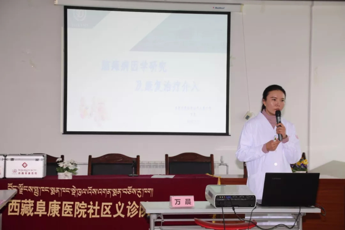 阜康醫(yī)院康復(fù)醫(yī)學(xué)科萬(wàn)晨老師給大家講解了最新的兒童康復(fù)理念,包括日常生活中腦癱的危險(xiǎn)因素、腦癱的發(fā)病率、病因,以及腦癱兒童康復(fù)介入、患者康復(fù)的流程與方法,并結(jié)合患者康復(fù)訓(xùn)練視頻,給服務(wù)中心治療師分享了康復(fù)訓(xùn)練的方法。同時(shí),阜康醫(yī)院義診組也為孩子們進(jìn)行了檢查并為他們免費(fèi)發(fā)放藥品,認(rèn)真詢問(wèn)患者用藥情況、耐心細(xì)致地說(shuō)明用藥方法。后期阜康醫(yī)院康復(fù)醫(yī)學(xué)科還將對(duì)每一位患者免費(fèi)提供三天的評(píng)估及康復(fù)指導(dǎo)。