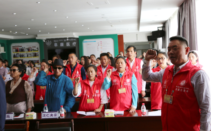 8月7日下午,西藏阜康醫療股份有限公司舉辦了阜康雪域天使志愿者服務隊活動啟動儀式暨首輪培訓大會,參加本次會議的有西藏志愿聯合服務會副秘書長、3名阜康公司行風監督員(西藏自治區工商聯非公黨工委辦公室副主任郭海亮、那曲金沙公司副經理次仁央宗、西藏卓瑪愛心家園實業有限公司董事長卓瑪),“阜康雪域天使志愿者服務隊”隊長王斌以及阜康醫院院領導、全體志愿者。會議由阜康雪域天使志愿者服務隊副隊長陳彬主持。