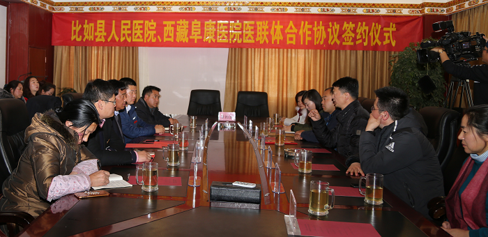 簽約儀式上比如縣委副書記、縣長邊巴次仁作了重要講話,他指出:醫療衛生事業發展、醫療質量的提高是我縣人民醫院的生命和靈魂,是我縣7萬多農牧民群眾身體健康、闔家幸福的保障,是我縣農牧民群眾的殷切希望。此次與阜康醫院開展醫聯體合作,對我縣醫療事業發展有著重大意義,事關我縣醫療衛生事業的發展,事關全縣各族干部群眾的身體健康,事關農牧民群眾的切身利益,我們一定要全力配合阜康醫院在我縣開展技術幫扶、人才培養工作,抓住這次機遇,增強責任感、緊迫感,加強組織領導、強化措施落實,確保醫療事業工作扎實有序推進,取得實實在在的成效。