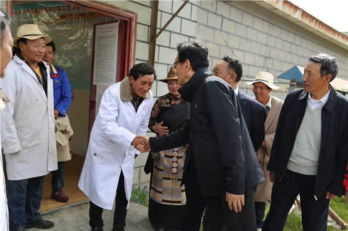 阿沛·晉源主席和施工人員一一握手慰問,囑咐他們在施工過程中一定注意安全!要把衛(wèi)生院建成標(biāo)桿衛(wèi)生院,造福夏瑪鄉(xiāng)農(nóng)牧民群眾!看完即將竣工的衛(wèi)生院他又來到老舊的衛(wèi)生院看望正在工作的醫(yī)護人員,與醫(yī)護人員和患者親切握手交談,囑咐他們一定多加學(xué)習(xí)和培訓(xùn),用心工作,搬到新的衛(wèi)生院后一定不要辜負(fù)阜康全體員工的期望!接著晉源主席也指示阜康要繼續(xù)幫助衛(wèi)生院,切實提高衛(wèi)生院工作人員醫(yī)療水平,將夏瑪鄉(xiāng)衛(wèi)生院打造成全縣乃至全區(qū)的標(biāo)桿衛(wèi)生院!
