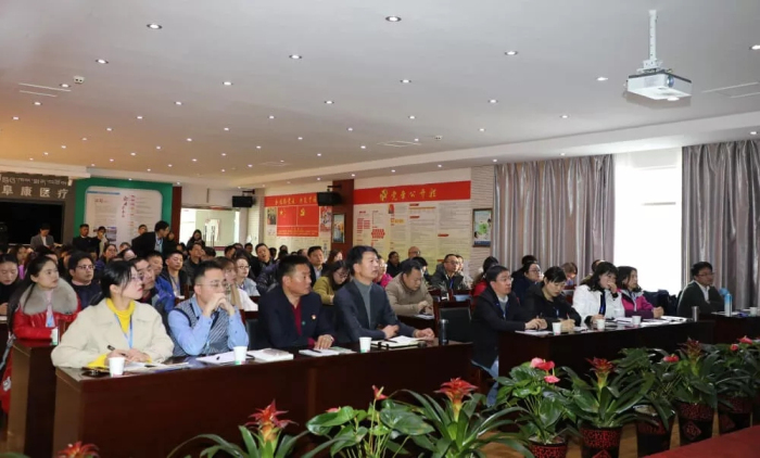 正式開講前,文進副所長代表四川大學(xué)華西醫(yī)院醫(yī)院管理研究所向阜康醫(yī)療贈送了醫(yī)院管理專業(yè)書籍,西藏阜康醫(yī)療股份有限公司黨委書記、董事長王斌接受了饋贈。王斌隨后向與會老師、同學(xué)介紹了阜康醫(yī)療的創(chuàng)業(yè)歷程。從2005年開始,經(jīng)過全體員工13年的不懈奮斗,阜康由當(dāng)初只有70張床位的小醫(yī)院發(fā)展成為530張床位,工作人員1057人,集醫(yī)療、教學(xué)、科研、預(yù)防、保健、康復(fù)、急救和社區(qū)衛(wèi)生服務(wù)于一體的西藏民營醫(yī)療機構(gòu),在醫(yī)學(xué)領(lǐng)域開創(chuàng)諸多全區(qū)之先河,為西藏的醫(yī)療事業(yè)發(fā)展、保障各族群眾的身體健康作出了巨大貢獻(xiàn)。