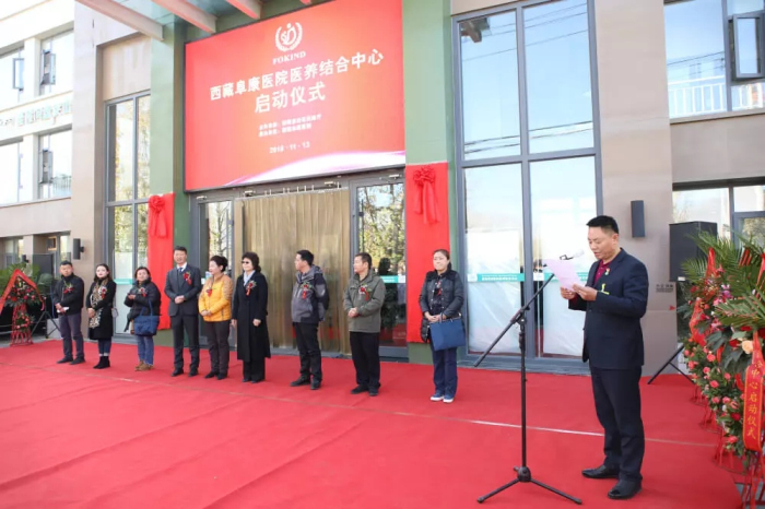 揭牌儀式由西藏阜康醫療股份有限公司副書記、總經理陳彬主持。西藏阜康醫療股份有限公司黨委書記、董事長王斌對各位領導的到來表示熱烈歡迎。王斌在致辭中表示,目前我國已經逐步進入老齡化社會,未富先老、子女無暇照顧老人的情況時有發生,老年病的高發使不少老人把醫院當成了養老院,這又加劇了醫療資源的緊張,使真正有住院需求的患者住不進來。西藏阜康醫院醫養結合中心的正式啟動,使我區老人在家門口就可實現輕松就醫、養老的愿望,樓下治病、樓上養老的方式切實減輕了家庭養老的負擔。