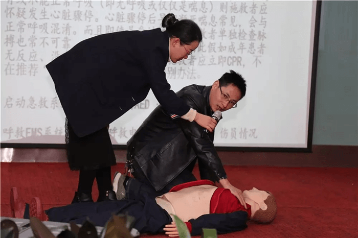 其中“消防知識”和“心肺復蘇:BLS”等課程的授課講師不但進行了理論知識的講解,而且帶領各位學員進行了實踐演練。
