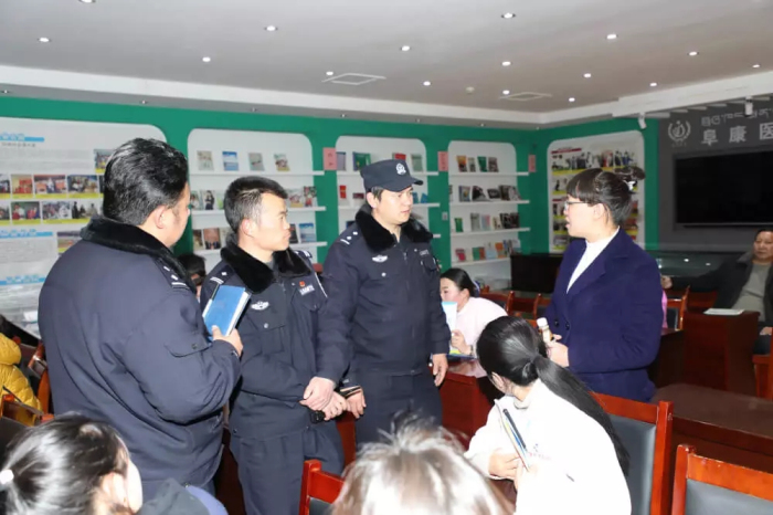 城關(guān)區(qū)公安局兩島派出所副所長羅布旺堆、治安中隊長李治平對阜康醫(yī)療長期以來重視法制建設(shè)與宣傳、積極支持配合公安機(jī)關(guān)的工作表示感謝。希望阜康醫(yī)療廣大醫(yī)護(hù)人員更好地利用法律武器保護(hù)自己的合法權(quán)益,在臨床一線工作中遇到糾紛時要注意保護(hù)好相關(guān)證據(jù),并及時報警防止事態(tài)擴(kuò)大。醫(yī)院安保人員作為處置突發(fā)事件的第一力量,要及時對現(xiàn)場情況進(jìn)行有效控制,為公安人員的后續(xù)工作贏得必要時間。