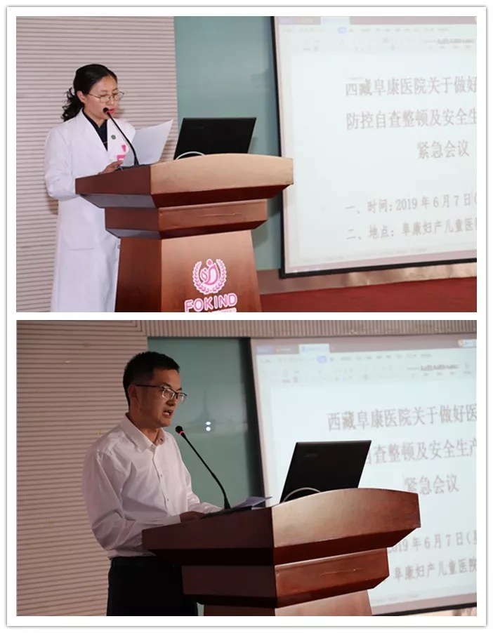 6月7日,西藏阜康醫院召集全院在崗中、高層領導在婦產兒童院區4樓會議室召開了關于做好醫院感染防控自查整頓及安全生產工作緊急會議。