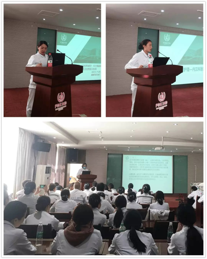 6月19日下午,在院長助理、護理部主任李麗的指導(dǎo)下,我部組織了阜康醫(yī)院共62名護理人員在阜康婦產(chǎn)兒童醫(yī)院四樓會議室開展了以“口腔護理”、“血糖監(jiān)測”、“查對制度、交接班制度、安全輸血制度、護理糾紛防范及處理”的相關(guān)培訓(xùn)。內(nèi)三科護士長張穎結(jié)合科室遇到的口腔護理操作,針對口腔護理用物準備、口腔護理的適應(yīng)癥、常用溶液的作用、口腔護理的操作流程等方面進行了講解;外二科護士長陳群就血糖監(jiān)測結(jié)合臨床經(jīng)驗針對血糖監(jiān)測的目的,操作流程及對糖尿病患者的健康宣教進行講解;治療室護士長尹文雋在講解制度中再三強調(diào)我們護理操作中要時刻銘記“患者需求至上”的核心價值觀,做到患者安全、護理安全,全心全力為患者服務(wù)。