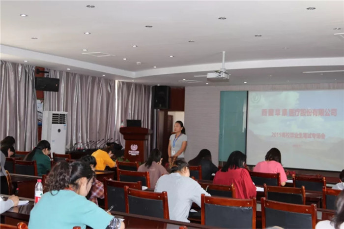 7月1日來院參加筆試的有92人,現(xiàn)場座無虛席。上午10:30阜康醫(yī)療股份有限公司人力資源總監(jiān)王險峰發(fā)表講話,他代表公司及醫(yī)院領導歡迎各位學生的遠道而來,向學生詳細介紹了阜康醫(yī)院歷史、醫(yī)院文化、發(fā)展態(tài)勢等諸多方面信息,并對藏族學生未來的就業(yè)方向給予了指導意見,希望學生們能響應自治區(qū)人社廳倡導的“適應時代、轉變觀念、理性就業(yè)”的擇業(yè)觀,并祝愿同學們在考試中能正常發(fā)揮取得好成績。