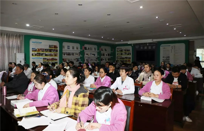 阜康醫院業務院長阿旺建才、李君、扇敏娜,院長助理李麗、多杰太,婦產兒童院區、心腦血管院區、綜合院區、康養院區廣大醫護技人員一起聆聽了學術講座。