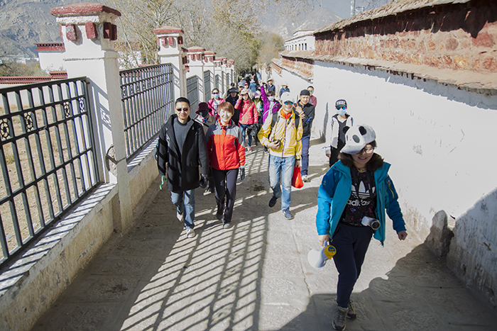 為保證參加活動人員的人身安全,支部對參加人員著裝、隨身攜帶物品等做出了明確規定,所有人從阜康婦產兒童分院集合統一出發驅車前往色拉寺。我們將人員分為三隊,為保證體力給大家發放了水果、水、巧克力等,同時還給帶隊的小組長分發了垃圾袋,鑒于西藏脆弱的生態環境,為保護大山環境,我們要求所有人員把爬山過程中產生的垃圾,和以前轉山者遺留下的垃圾一并帶走,為環境保護貢獻自己微小的力量。