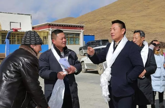 這次陳彬副書記一行來到夏瑪鄉還有另一個目的,2018年由西藏阜康醫院投資援建的夏瑪鄉衛生院即將開工建設,王鐵君副總經理帶來了阜康援建嘉黎縣夏瑪鄉衛生院的圖紙,并陪同陳彬副書記和李智安鄉長進行了實地查看,為開工建設做好前期籌備工作。衛生院建設完成后,將大大緩解夏瑪鄉村民看病難的問題。