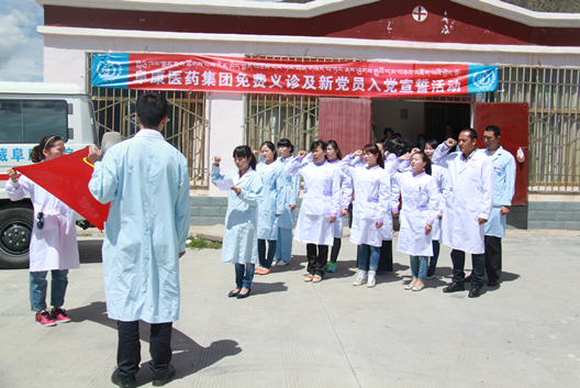 宣誓儀式完畢后,新黨員們和來(lái)自西藏阜康醫(yī)藥集團(tuán)的其他醫(yī)護(hù)人員開(kāi)始了義診活動(dòng)。來(lái)自該村的村民排著有序的隊(duì)伍看病診治,測(cè)血壓、做B超、取藥、向?qū)<易稍兊日麄€(gè)義診現(xiàn)場(chǎng)井然有序。有著近40年黨齡的老黨員嘎布院長(zhǎng)表示,在建黨日這一天舉行新黨員進(jìn)村義診活動(dòng),為的就是充分發(fā)揮共產(chǎn)黨員的先鋒模范作用,時(shí)時(shí)刻刻樹(shù)立黨員們?yōu)槊穹?wù)的意識(shí)。同時(shí),醫(yī)務(wù)人員除了認(rèn)真為村民們檢查病情、解答疑問(wèn)外,還講解衛(wèi)生保健、安全飲食、合理用藥等衛(wèi)生常識(shí)。此次活動(dòng)共診治病人200余名,有80余名患者做了腹部彩超,免費(fèi)發(fā)放50多種價(jià)值15000余元的藥品,瓊達(dá)村村民對(duì)西藏阜康醫(yī)藥集團(tuán)的義診活動(dòng)表示感激,并希望西藏阜康醫(yī)藥集團(tuán)以后經(jīng)常到該村免費(fèi)義診,為村民送去健康。