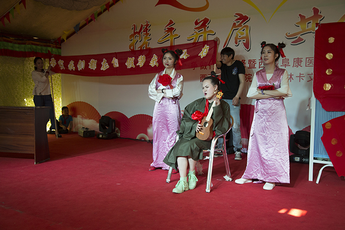 兩天的時間里,上午有阜康同仁帶來的一場場視聽盛宴,下午有展示自我、唱出個性的有獎歌詠比賽,也有隨心自在、共進共挽的鍋莊合舞,更有大家在湛藍天空下、在綠蔭草坪中無比親近的歡聲笑語。