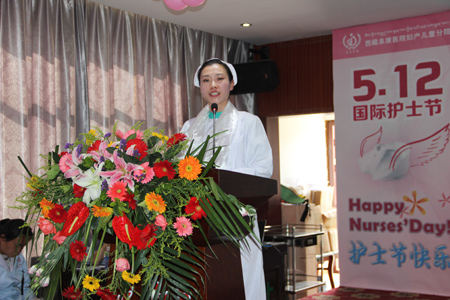 下午是“5.12國(guó)際護(hù)士節(jié)”慶祝活動(dòng),同去年一樣例行勤儉節(jié)約只是搞了一個(gè)簡(jiǎn)單地茶話(huà)會(huì),但是滿(mǎn)桌的水果,粉紅色的節(jié)日慰問(wèn)語(yǔ),美麗的鮮花都是院領(lǐng)導(dǎo)對(duì)護(hù)士姐妹們最由衷的節(jié)日慰問(wèn)。本次慶?;顒?dòng)劉瀟瀟總經(jīng)理、陳彬總經(jīng)理、張德才院長(zhǎng)、敖德秀副院長(zhǎng)、劉連福副院長(zhǎng)、李君副院長(zhǎng)、張治副院長(zhǎng)應(yīng)邀出席,他們紛紛致辭感謝全院護(hù)士這一年的辛苦工作,并對(duì)她們寄予厚望,希望白衣天使們,銘記“患者需求至上、團(tuán)隊(duì)精誠(chéng)協(xié)作”的院訓(xùn),緊跟時(shí)代步伐,克服護(hù)理工作量大、人員緊張等諸多困難,齊心協(xié)力,努力工作,再創(chuàng)佳績(jī)。